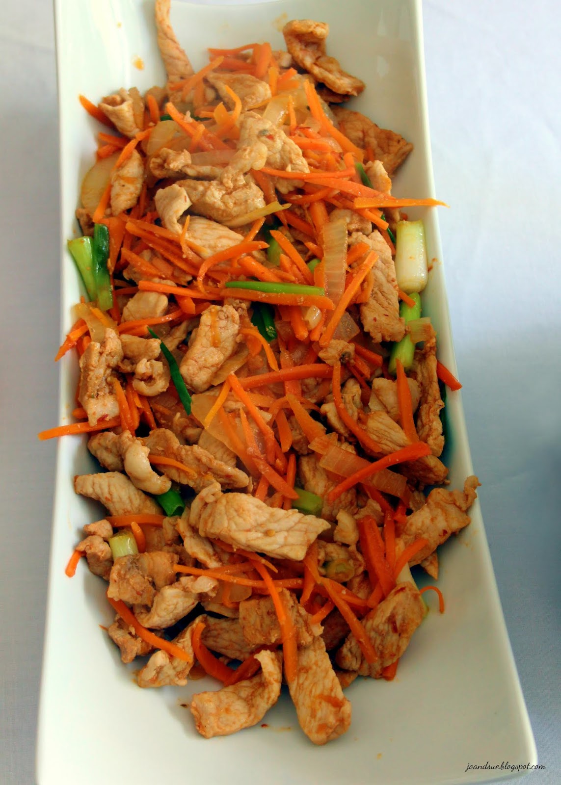 This one is mainly pork with a few veggies thrown in for good measure. It is very bright and cheerful and tastes sooooo good! You can make it as spicy as you like. We went with fairly mild but you can definitely add more chili paste if you like!
